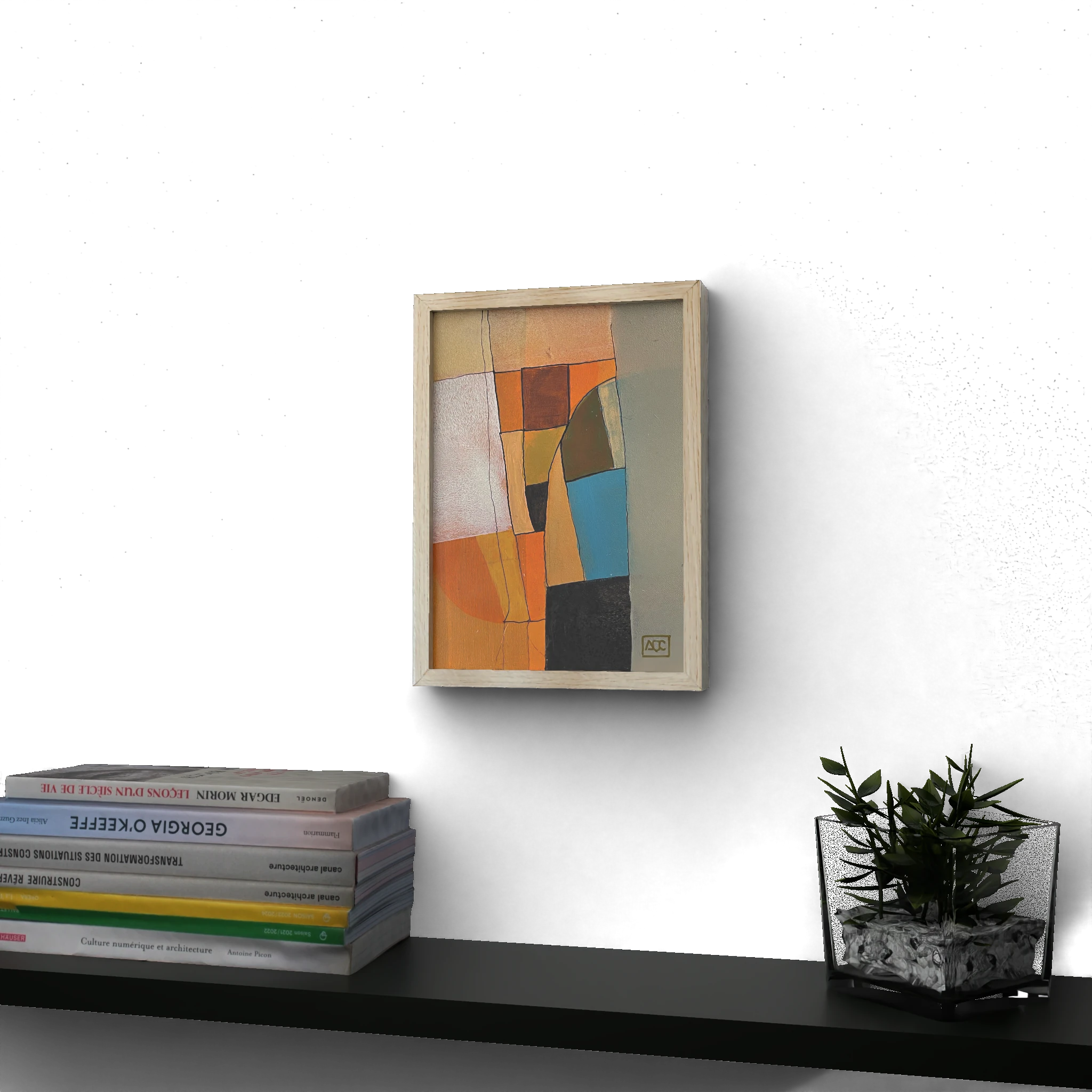 AMaj – Research on Harmony Acrylic on paper, 10.5x16cm Arnaud Quercy Creations / AQC0647 / 2024 This painting explores the harmony of the A Major chord through the interplay of colors: yellow-orange (A), blue-green (C#), and yellow (E). By translating musical notes into visual elements, the artist bridges sound and sight, creating a harmonious composition that reflects the essence of A Major. The geometric shapes and layered colors symbolize the structured yet expressive nature of musical harmony, offering a visual representation of auditory beauty. This piece is part of the synesthetic collection where the artist maps colors to the circle of fifths, merging the sensory experiences of color and music. Examples of famous musical pieces composed in A Major include Ludwig van Beethoven’s ‘Symphony No. 7,’ Wolfgang Amadeus Mozart’s ‘Clarinet Concerto,’ Johann Sebastian Bach’s ‘Mass in A Major, BWV 234.’ and ‘Tous les Garçons et les Filles’ de Françoise Hardy