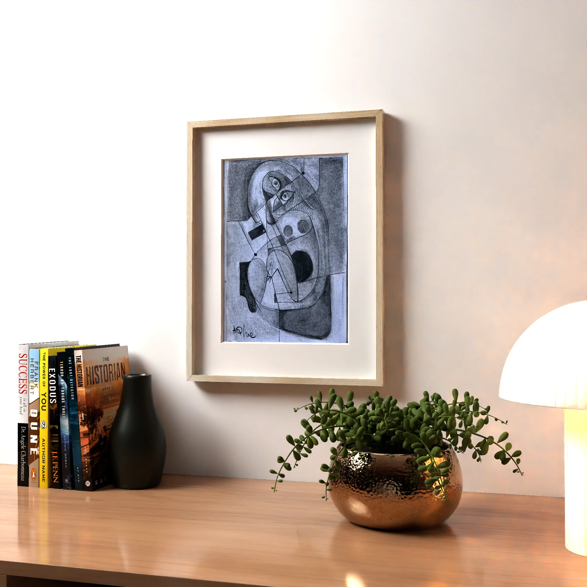 « A woman and her phone » Charcoal on paper, 21×29.5cm This piece captures the loneliness of modern existence through the use of cubist style. I depict a lone woman, whom we can assume is reflecting on the world outside her phone as well as on herself; we feel like we are watching an intimate moment of isolation. She begins to think about the purpose of her life, and how real are the virtual connections she feels to people both near and far away from her. The phone is waiting for a text message or call… In vain. Arnaud Quercy Creations / AQC0392 / 2022