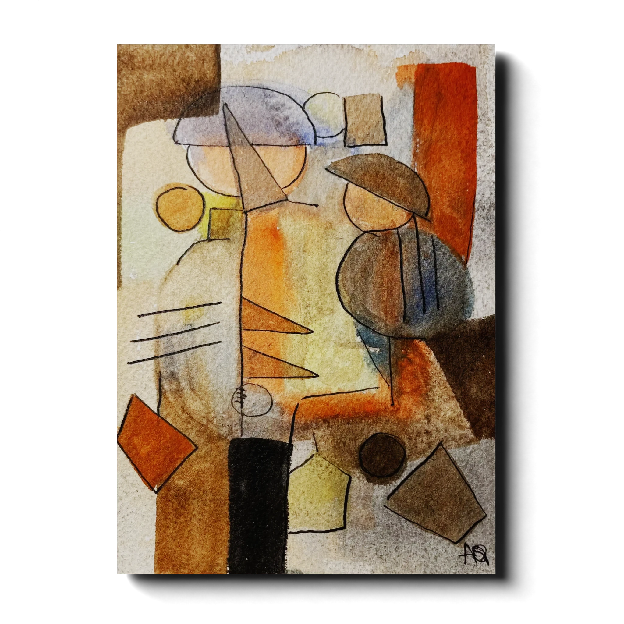 The cat of Istanbul – variations Watercolor on paper, 10.5×14.8cm Arnaud Quercy Creations / AQC0511 / 2024 This artwork adopts a cubist style, characterized by the geometric fragmentation and reassembly of forms to create an abstract depiction of a subject, in this case, a cat. The palette is composed of earthy and neutral tones with instances of more vivid colors, which may be intended to reflect the vibrant cultural tapestry of Istanbul. The use of cubism allows for multiple perspectives to be viewed simultaneously, suggesting the multifaceted nature of the city and its inhabitants, as well as the complex character of the feline subject. This piece seems to capture the essence of Istanbul through the lens of its iconic street cats, which are an integral part of the city’s urban landscape.