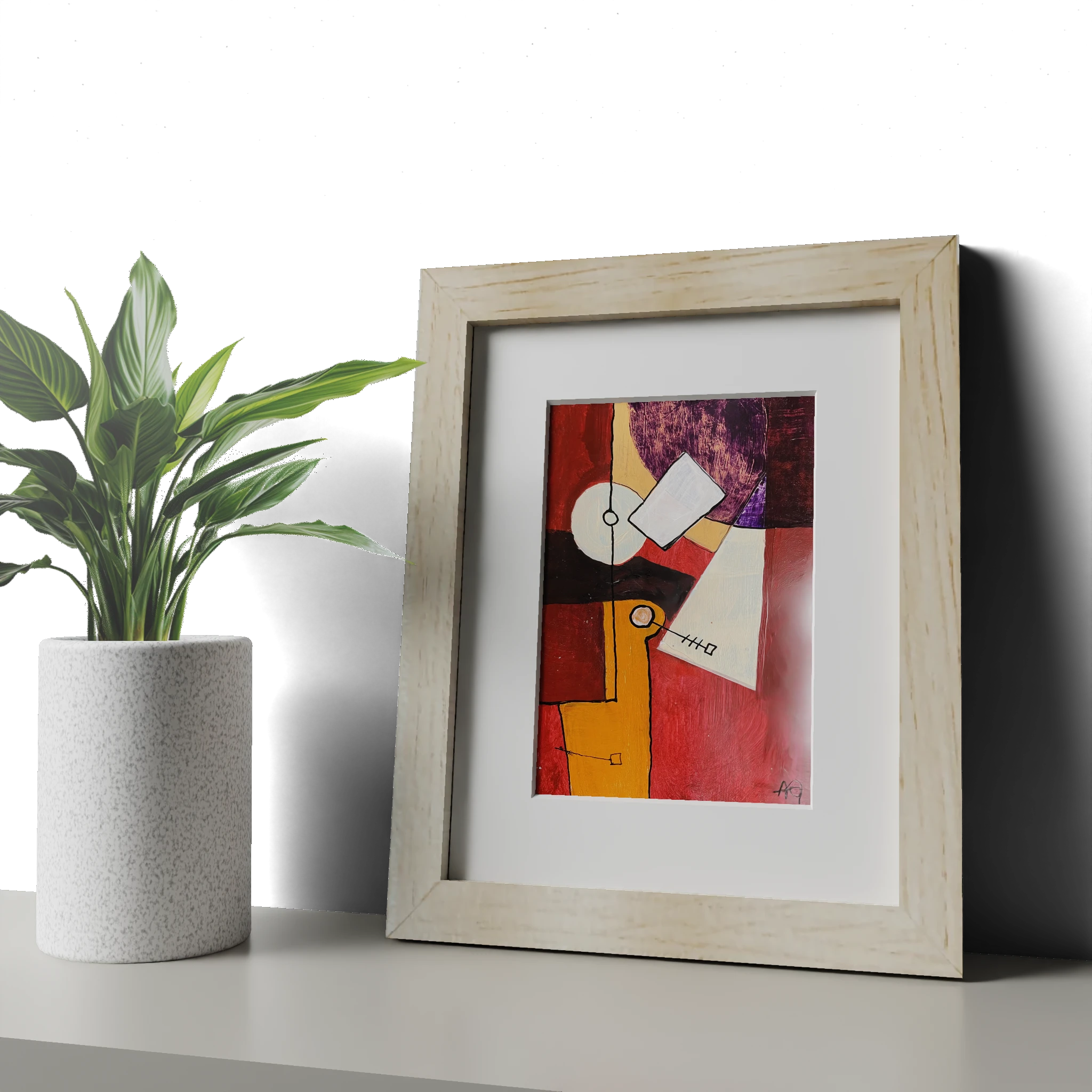 Promenade aux jardins du Luxembourg, variations d’été Acrylique sur papier, 10.5×14.8cm Arnaud Quercy Creations / AQC0518 / 2024 The artwork features abstract shapes and forms set against a textured background, with a composition that suggests the interplay of natural and architectural elements one might encounter in the Luxembourg Gardens. Warm and rich colorsreflect the natural beauty and the vibrant cultural life of the gardens during the summer. The abstract forms, rendered in a bold, graphic style, invite the viewer to interpret the spaces and figures that emerge from the juxtaposition of color and shape, evoking the experience of a leisurely stroll through one of Paris’s most famous spaces.