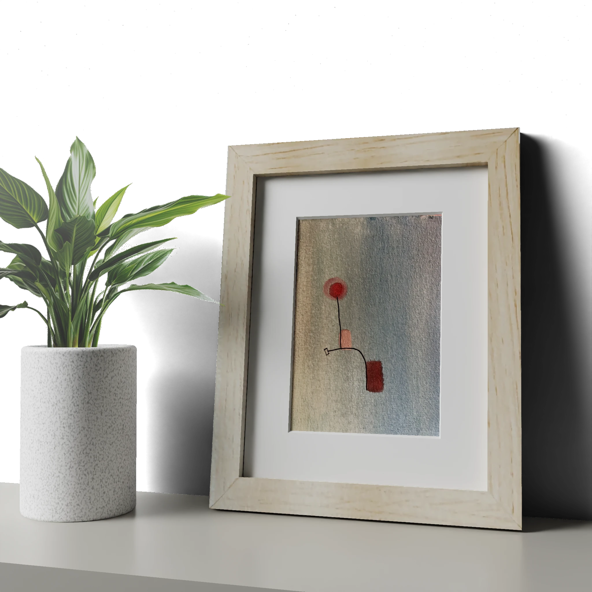 Meditations – Variation 2 Aquarelle sur papier, 10,5×14,8cm Arnaud Quercy Creations / AQC0544 / 2024 ‘Meditations – Variation 2’ est une exploration de l’équilibre et de la simplicité à travers l’aquarelle. Cette pièce minimaliste utilise des formes géométriques et des lignes délicates pour créer une composition sereine et introspective. Le fond bleu clair évoque le calme et la tranquillité, tandis que les touches de rouge et de rose ajoutent chaleur et émotion. Les éléments géométriques, soigneusement agencés, symbolisent la recherche d’harmonie intérieure. La finesse des lignes noires relie les formes, suggérant des connexions subtiles. Cette oeuvre invite le spectateur à une réflexion méditative sur la simplicité et la beauté dans le minimalisme. ‘Meditations – Variation 2’ fait partie d’une série où Arnaud Quercy explore la sérénité et l’harmonie à travers des variations délicates de formes et de couleurs. Chaque pièce est une invitation à une pause contemplative, une méditation visuelle sur l’équilibre et la beauté du simple.