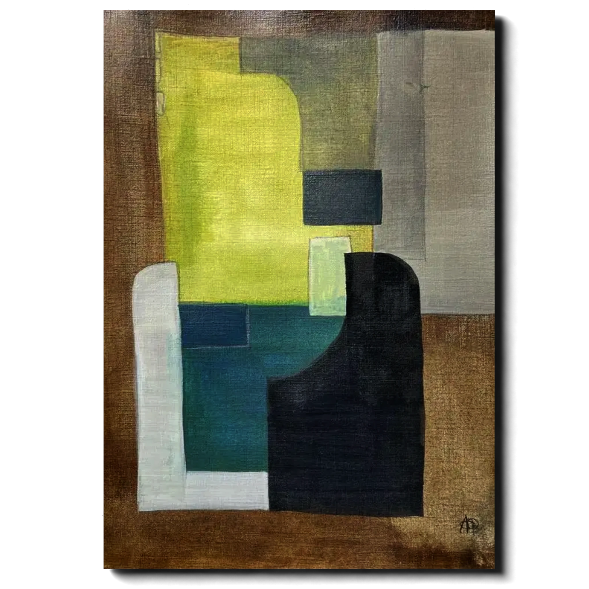 Composition 4 Acrylic ink on paper, 21×29.5cm Arnaud Quercy Creations / AQC0570 / 2024 ‘Composition 4’ is a striking abstract artwork that showcases the dynamic interplay of geometric shapes and a sophisticated color palette. Using acrylic on paper, Arnaud Quercy creates a rich tapestry of layered forms and textures. The piece features a harmonious blend of green, blue, black, and beige tones, with subtle gradients adding depth and complexity. The structured shapes and clean lines create a sense of balance and order, while the varied color blocks add visual interest and movement. The textured background enhances the composition, giving it a tactile quality that invites closer inspection. This piece is part of Arnaud Quercy’s ongoing exploration of abstract art, where he examines the relationships between color, form, and texture. ‘Composition 4’ encourages viewers to engage with the artwork on a personal level, discovering their own interpretations and connections within the abstract forms.