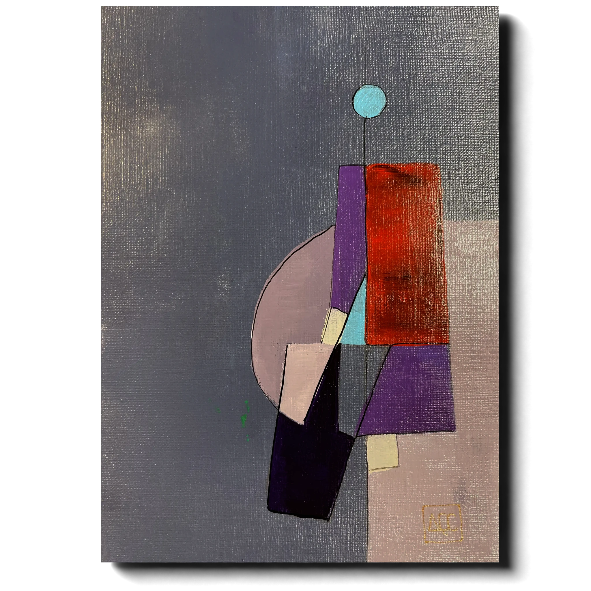 AbMaj – Research on Harmony Acrylic on canvas, 16x21cm Arnaud Quercy Creations / AQC0606 / 2024 This painting explores the harmony of the Ab Major chord through the interplay of colors: blue (Ab), red (C), and blue-purple (Eb). By translating musical notes into visual elements, the artist bridges sound and sight, creating a harmonious composition that reflects the essence of Ab Major. The geometric shapes and layered colors symbolize the structured yet expressive nature of musical harmony, offering a visual representation of auditory beauty. This piece is part of the synesthetic collection where the artist maps colors to the circle of fifths, merging the sensory experiences of color and music. Examples of famous musical pieces composed in Ab Major include Frédéric Chopin’s ‘Polonaise in Ab Major, Op. 53’ and Jerome Kern’s jazz standard ‘All the Things You Are.’