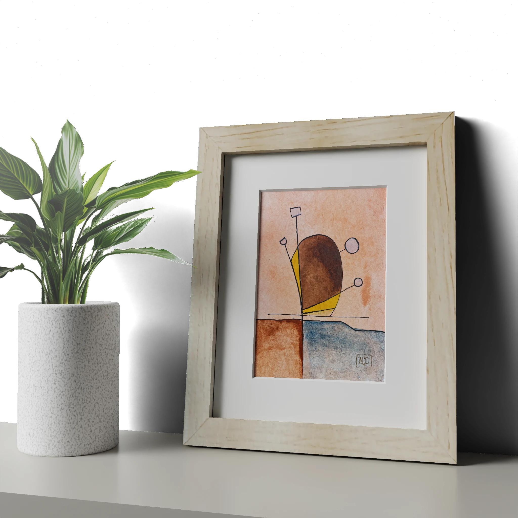 C+ – Research on Harmony – Variation 1 Watercolor on paper, 12x16cm Arnaud Quercy Creations / AQC0667 / 2024 This painting explores the harmony of the C+ (C Augmented or #5) chord through the interplay of colors: red (C), and blue (G#). By translating musical notes into visual elements, the artist bridges sound and sight, creating a harmonious composition that reflects the essence of Ab Major. The geometric shapes and layered colors symbolize the structured yet expressive nature of musical harmony, offering a visual representation of auditory beauty. This piece is part of the synesthetic collection where the artist maps colors to the circle of fifths, merging the sensory experiences of color and music.