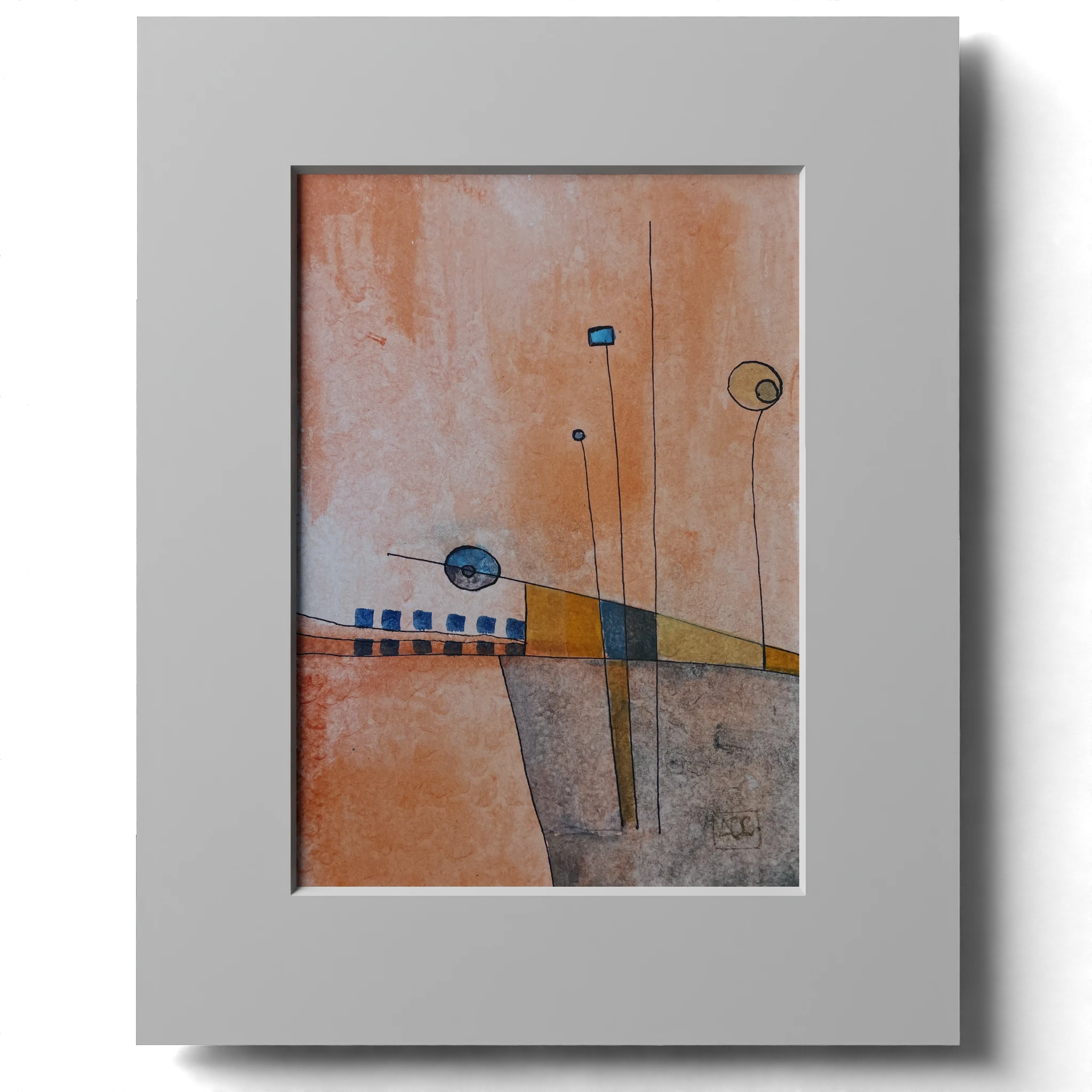 Ab+ – Research on Harmony Watercolor on paper, 16x24cm Arnaud Quercy Creations / AQC0674 / 2024 This painting explores the harmony of the Ab+ (A flat Augmented or #5) chord through the interplay of colors: Blue (Ab), Red (C) and Yellow (E). By translating musical notes into visual elements, the artist bridges sound and sight, creating a harmonious composition that reflects the essence of Ab Major. The geometric shapes and layered colors symbolize the structured yet expressive nature of musical harmony, offering a visual representation of auditory beauty. This piece is part of the synesthetic collection where the artist maps colors to the circle of fifths, merging the sensory experiences of color and music.