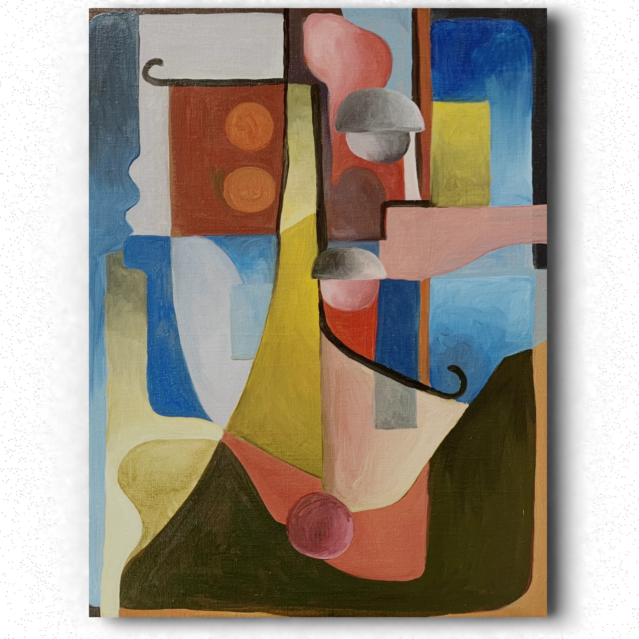This painting explores the harmony of the C# Major chord through the interplay of colors: blue-green (C#), red purple (F), and blue (G#). By translating musical notes into visual elements, the artist bridges sound and sight, creating a harmonious composition that reflects the essence of C# Major. The geometric shapes and layered colors symbolize the structured yet expressive nature of musical harmony, offering a visual representation of auditory beauty. This piece is part of the synesthetic collection where the artist maps colors to the circle of fifths, merging the sensory experiences of color and music. Examples of famous musical pieces composed in C# Major include Frédéric Chopin’s ‘Étude Op. 10, No. 4’ and Johnny Green’s jazz standard ‘Body and Soul.’