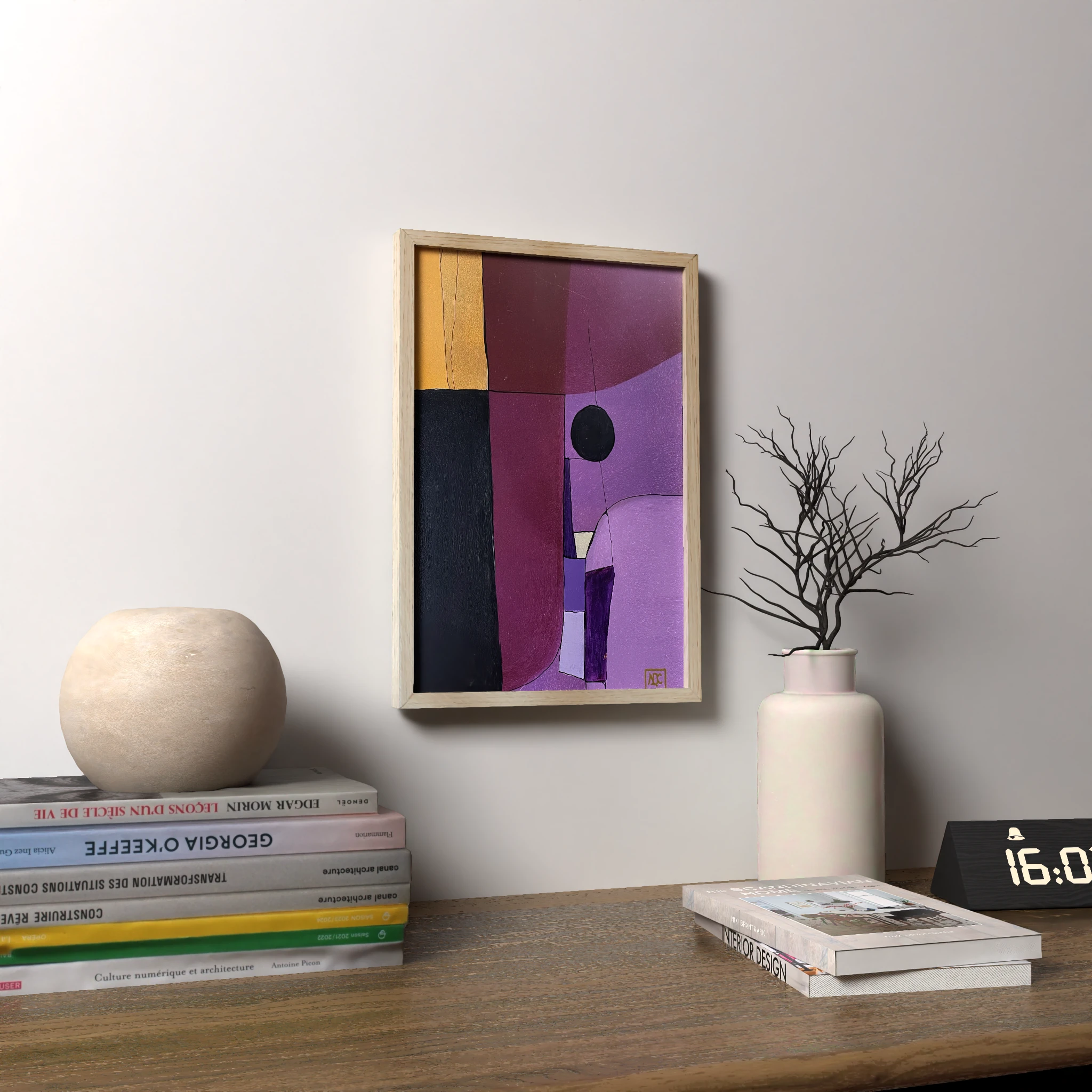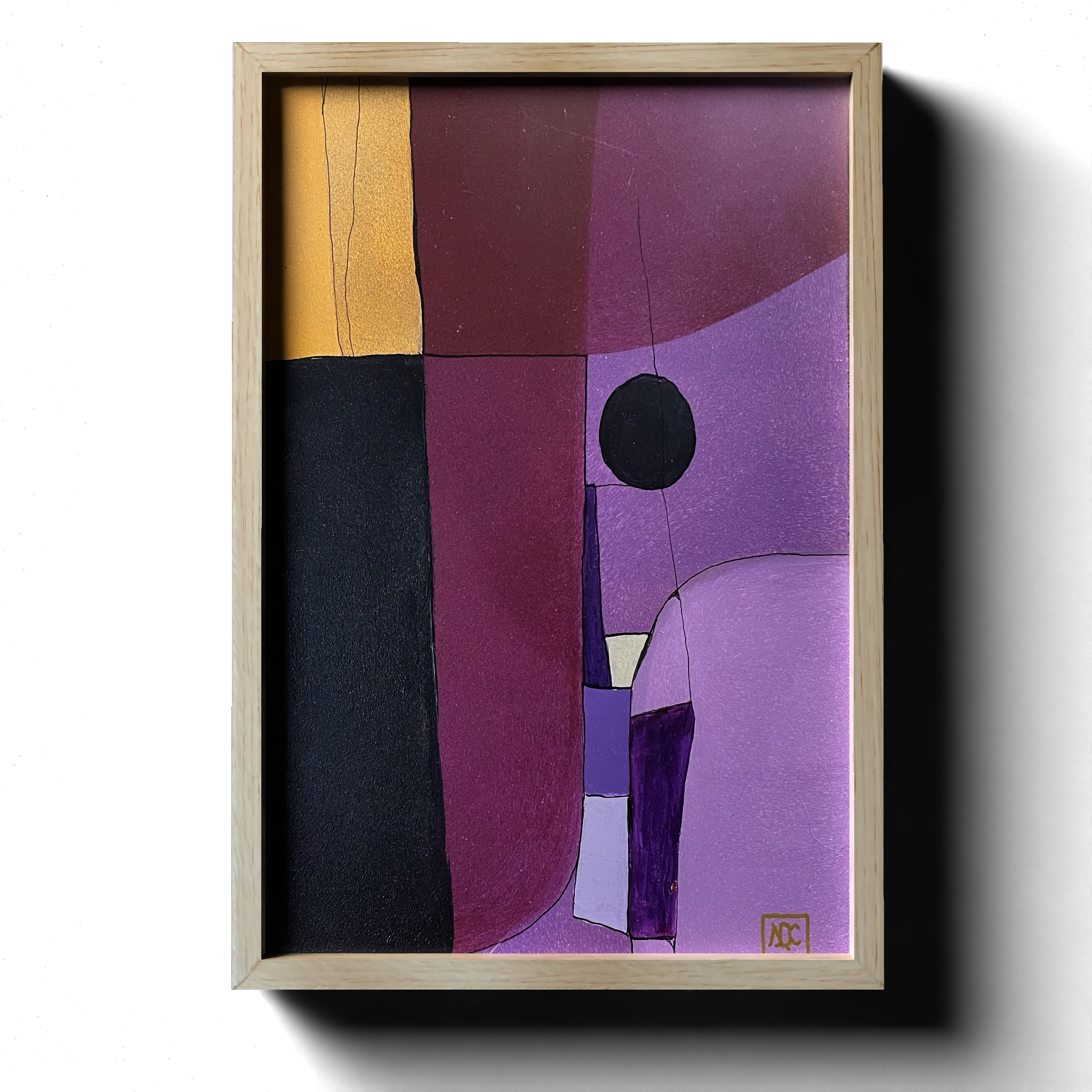 This painting explores the harmony of the Bb Major chord through the interplay of colors: purple (Bb), orange (D), and red-purple (F). By translating musical notes into visual elements, the artist bridges sound and sight, creating a harmonious composition that reflects the essence of Bb Major. The geometric shapes and layered colors symbolize the structured yet expressive nature of musical harmony, offering a visual representation of auditory beauty. This piece is part of the synesthetic collection where the artist maps colors to the circle of fifths, merging the sensory experiences of color and music. Examples of famous musical pieces composed in Bb Major include Wolfgang Amadeus Mozart’s ‘Piano Sonata No. 17 in Bb Major, K. 570’ and Charlie Parker’s jazz standard ‘Anthropology.’