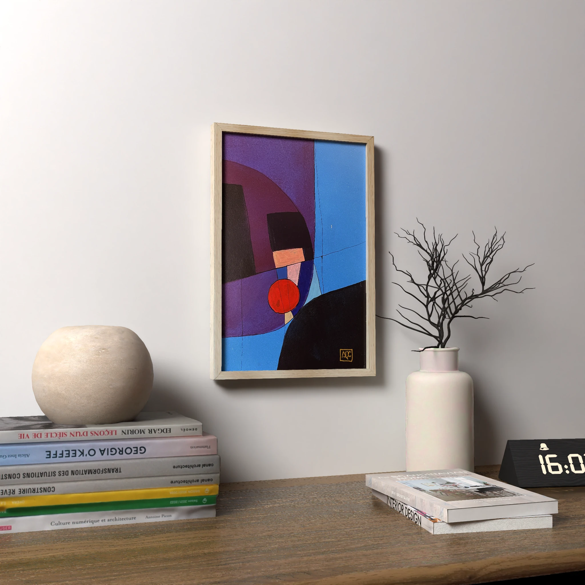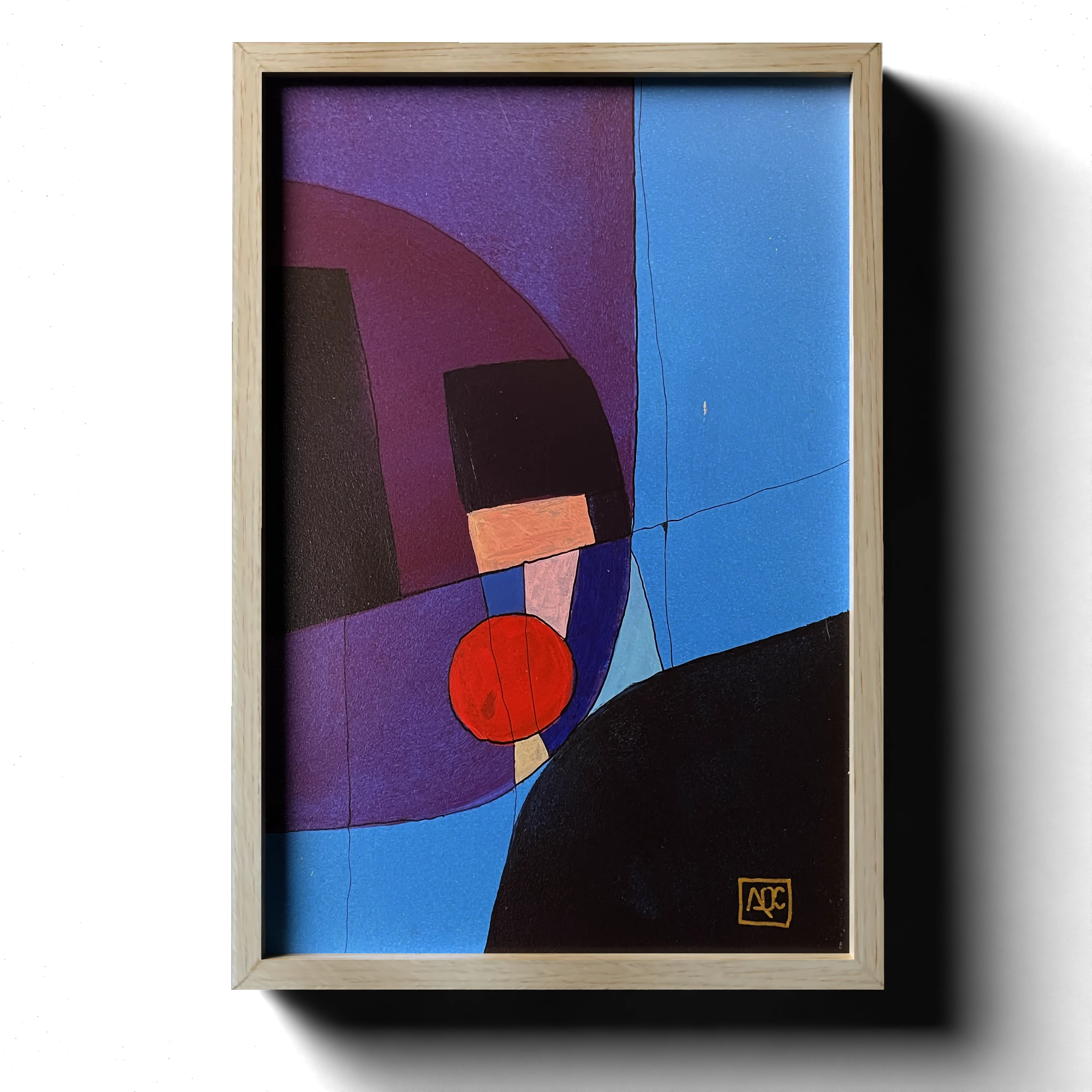 This painting explores the harmony of the F minor chord through the interplay of colors: red-purple (F), blue (Ab), and red (C). By translating musical notes into visual elements, the artist bridges sound and sight, creating a harmonious composition that reflects the essence of F minor. The geometric shapes and layered colors symbolize the structured yet expressive nature of musical harmony, offering a visual representation of auditory beauty. This piece is part of the synesthetic collection where the artist maps colors to the circle of fifths, merging the sensory experiences of color and music. Examples of famous musical pieces composed in F minor include Frédéric Chopin’s ‘Piano Concerto No. 2 in F minor, Op. 21’