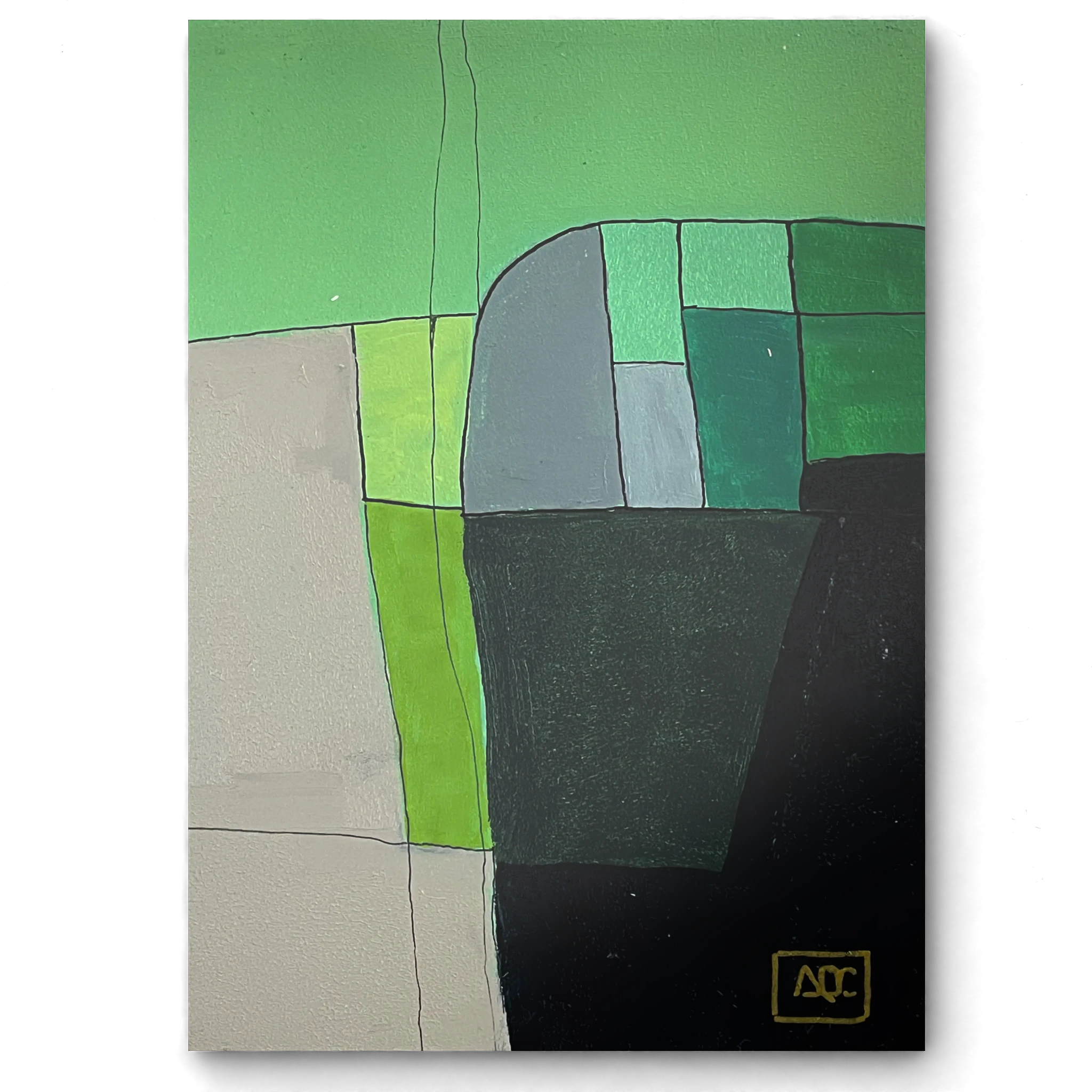 Bach’s Mass in B Minor resonates in this painting with warm tones of yellow-green, orange, and deep green, creating a world both structured and expressive. How do these hues bring to life the complex beauty of Bach’s composition?