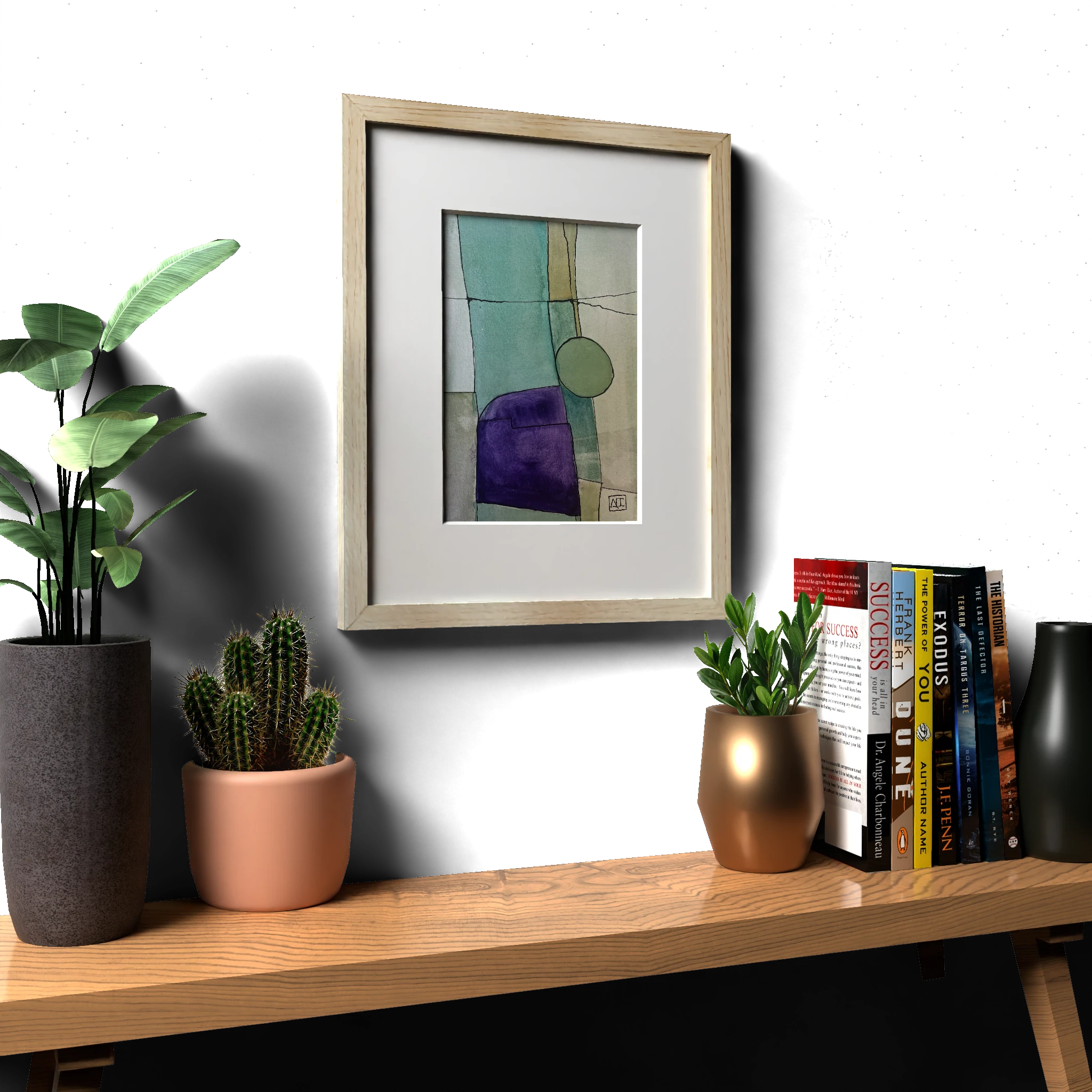 ‘Terraces of Ronda – Ancient Path’ invites viewers to journey through the timeless charm of Ronda, Spain, where layered terraces and winding paths echo centuries of history and cultural richness. This abstract watercolor composition blends architectural geometry with organic forms, capturing the harmony between man-made structures and the surrounding natural landscape.