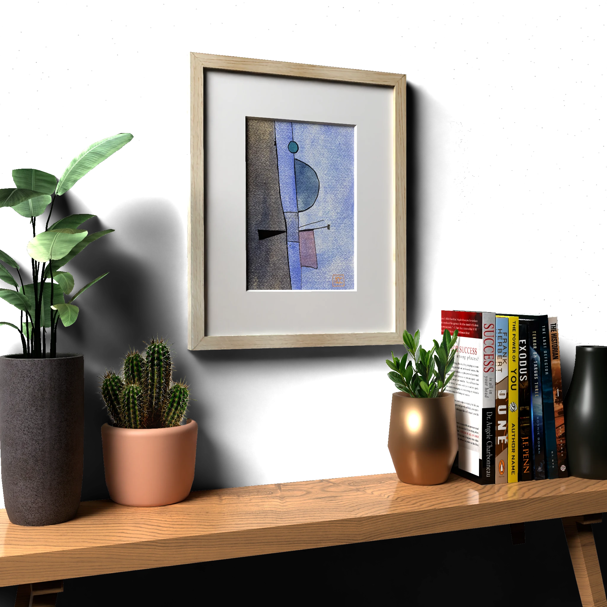 Ab Octaves – Reflexions 14 Watercolor on paper, 16x24cm Arnaud Quercy Creations / AQC0679 / 2024 This painting explores the note Ab in octaves through the interplay of shades of blue. By translating musical notes into visual elements, the artist bridges sound and sight, creating a harmonious composition that reflects the essence of Ab. The geometric shapes and layered colors symbolize the structured yet expressive nature of musical harmony, offering a visual representation of auditory beauty. This piece is part of the synesthetic collection where the artist maps colors to the circle of fifths, merging the sensory experiences of color and music. In music, octaves are intervals where the higher note has double the frequency of the lower, creating a sense of unity and completeness. They are fundamental to musical structure, providing a foundation for harmony and melody. In this painting, the octaves of Ab are visually represented through varying shades of blue, capturing the depth and richness of this musical interval, and reflecting its role in creating a cohesive and resonant auditory experience.